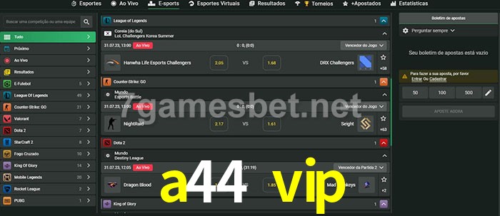 A aposta a44 vip oferece aos jogadores a experiência mais conveniente de apostas em eSports!